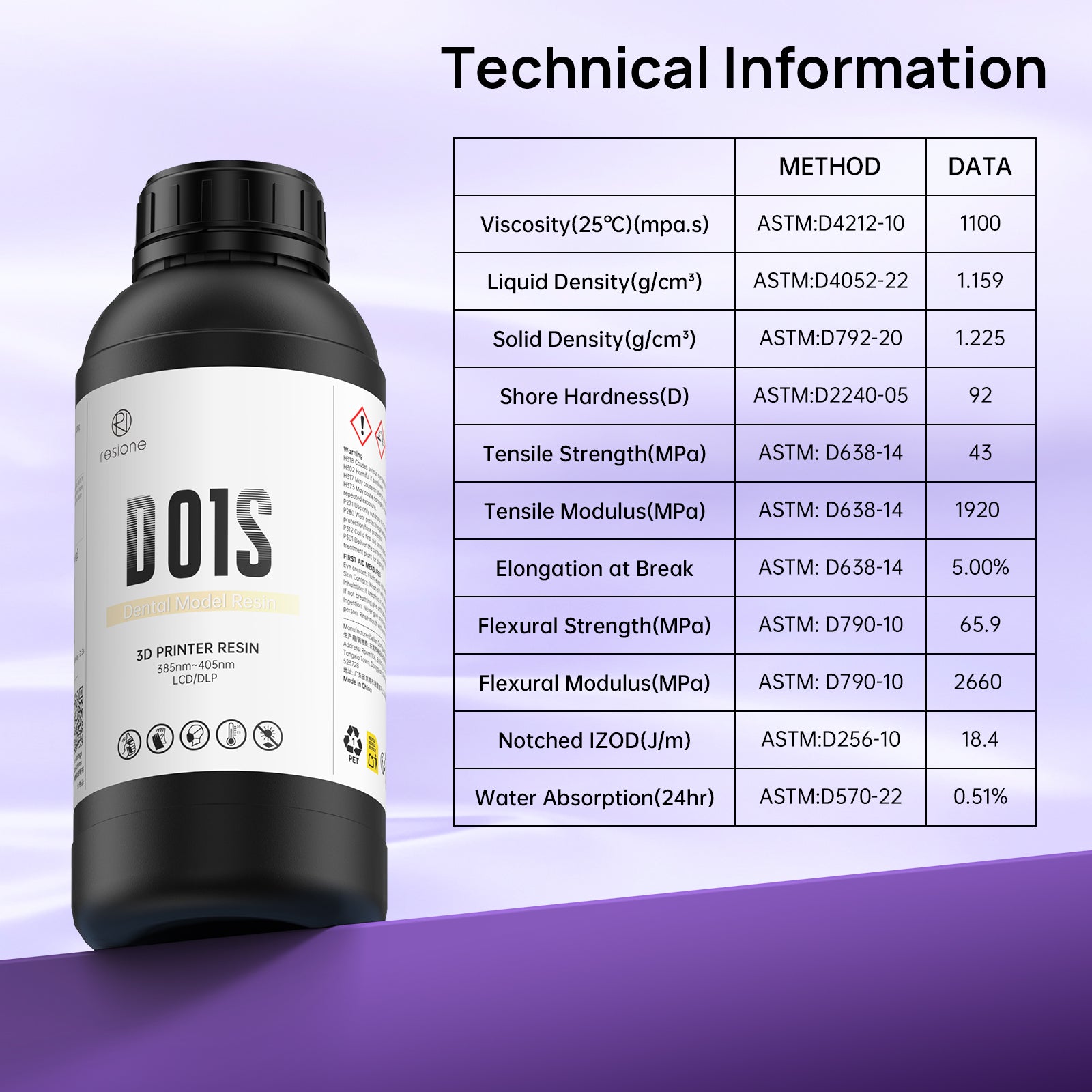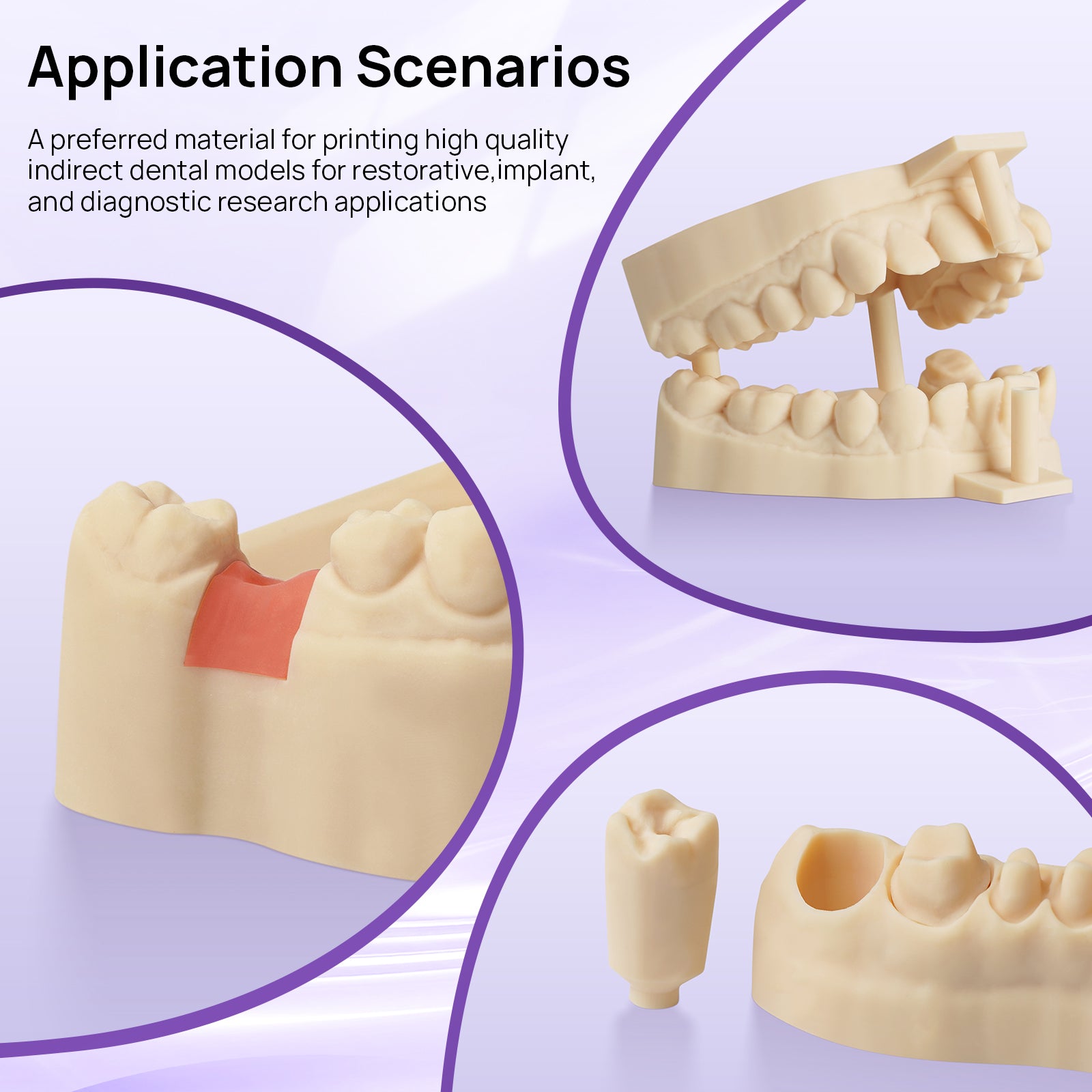 D01S is a seashell-colored dental model resin that incorporates unique inorganic fillers for enhanced performance. The printed dental models exhibit a matte surface with a plaster texture, ensuring precise scanning results. In addition, the resin material boasts accurate size, a scratch-resistant surface, extremely low shrinkage rate, and long-lasting stability, making it ideal for printing high-quality indirect dental models for restoration, implantation, and diagnostic purposes.